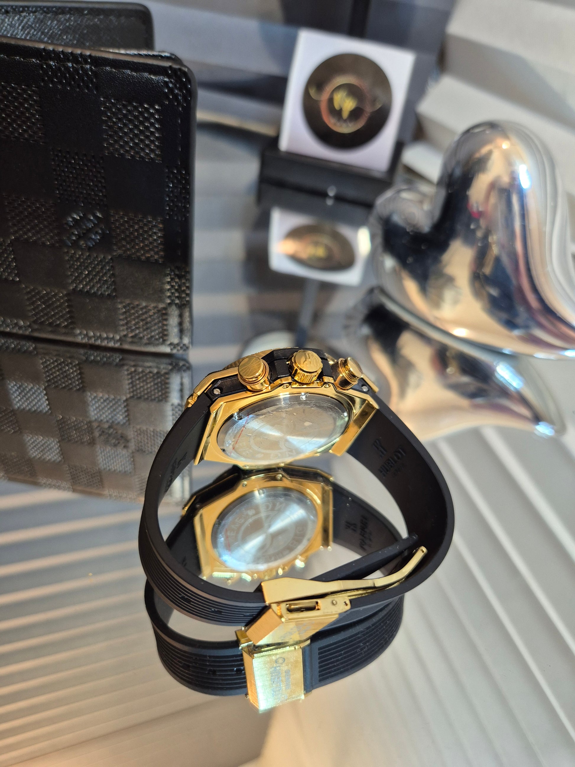 U ovom boxu se dobije muški sat Hublot i muški Louis Vuitton novčanik 10cmx12cm dimenzije.